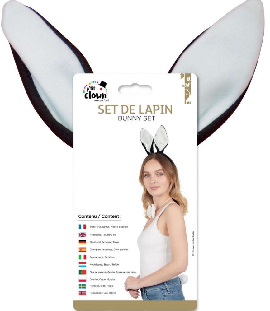 Komplekts Zaķis (ausis,tauriņš,ļipa) melns/balts