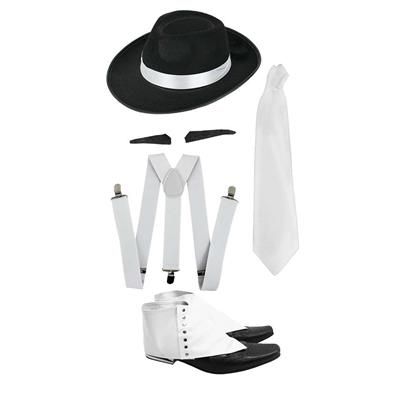 Komplekts Gansters (Bikšturi, Cepure, Apavu pārvalki, Kaklasaite, Ūsas)
